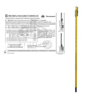 Termómetro químico de varilla relleno de líquido coloreado (sin mercurio) . Puedes tener formato de -10ºC a 110ºC y de -10 +200 ºC ± 1 ºC . Longitud 300 mm.